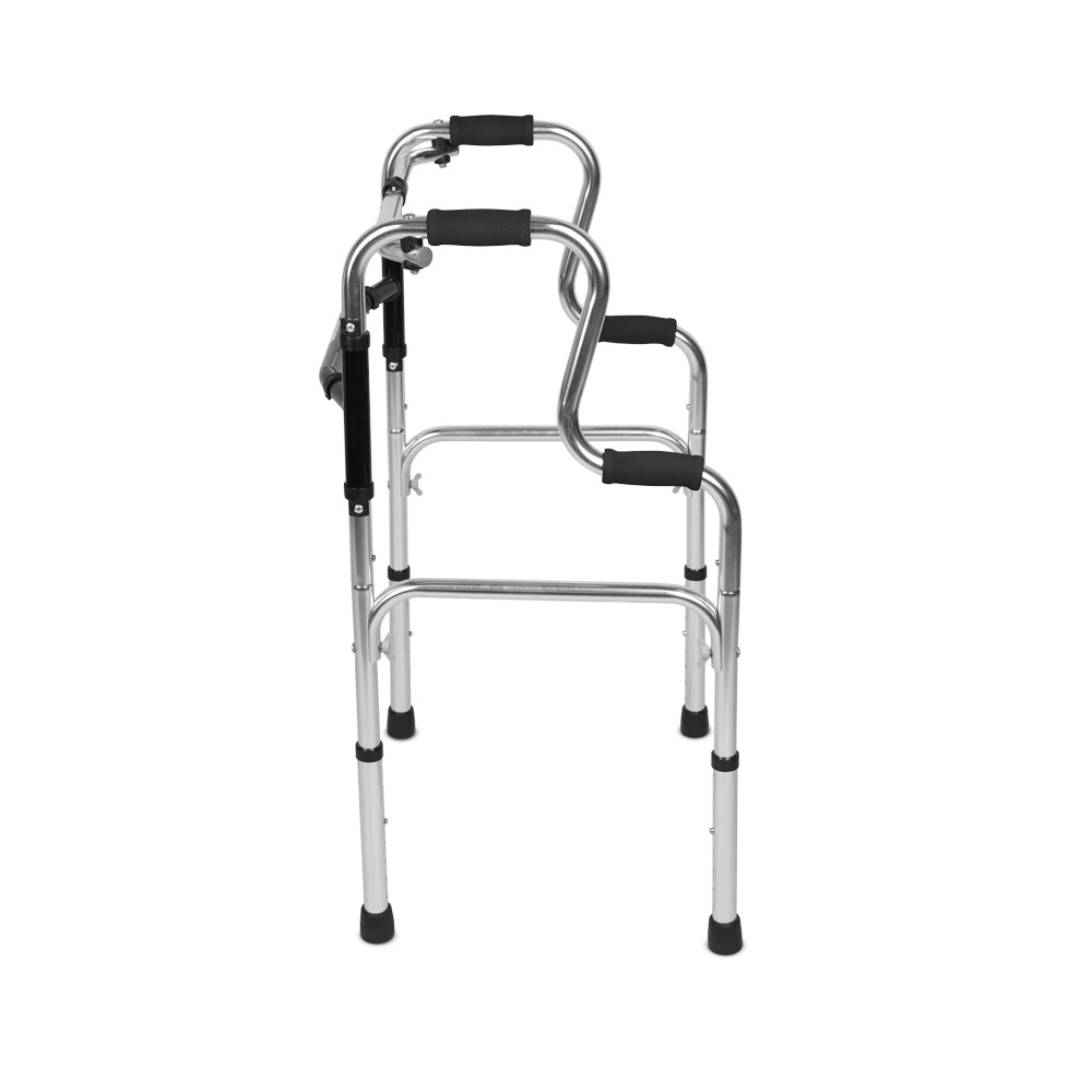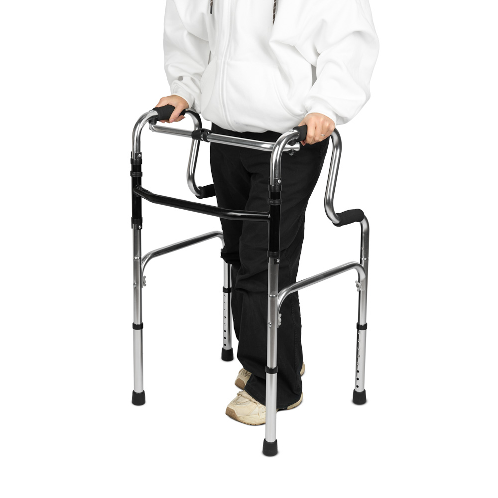 Продуманные двухуровневые ходунки, позволяющие пользователю самостоятельно вставать и начинать движение. Лёгкая складная конструкция удобна в хранении, а наличие шагающего режима снижает нагрузку на позвоночник. Ходунки поставляются в компактном разобранном виде, что значительно облегчает логистику.