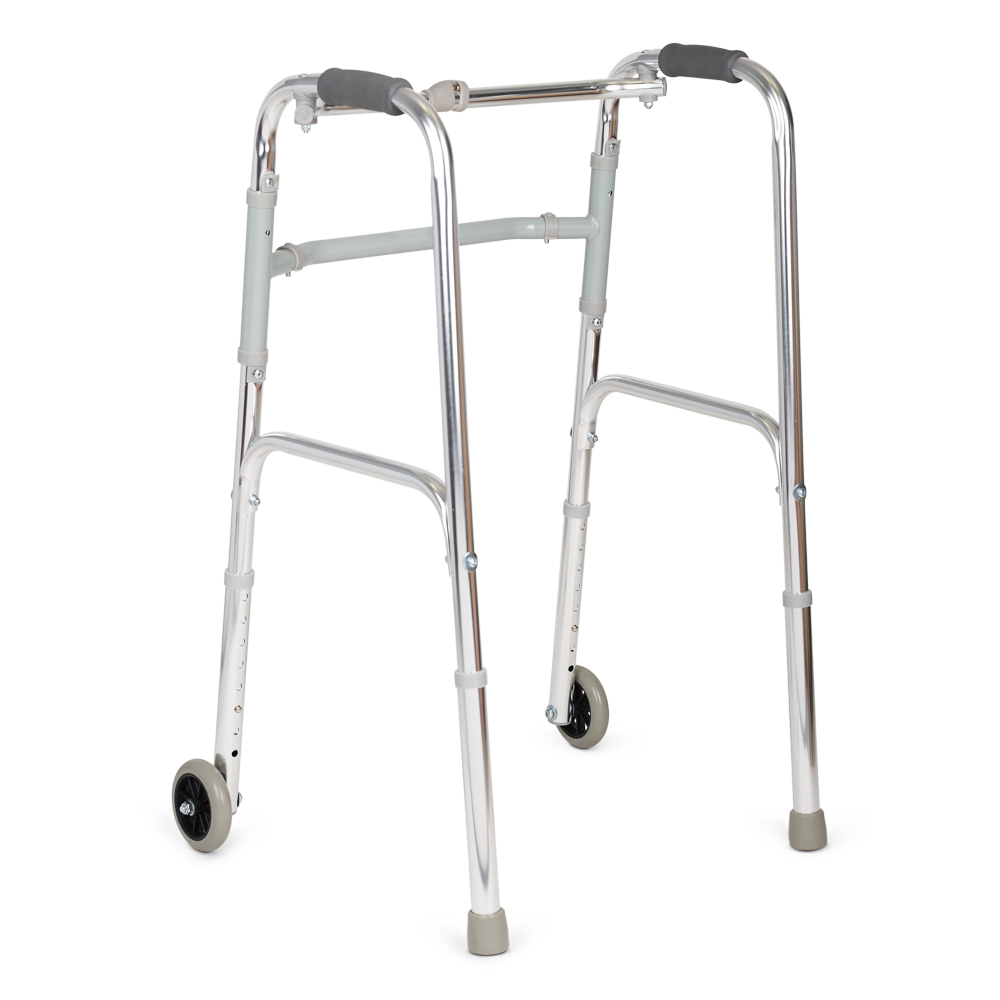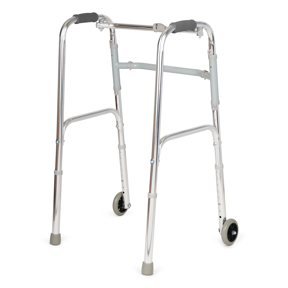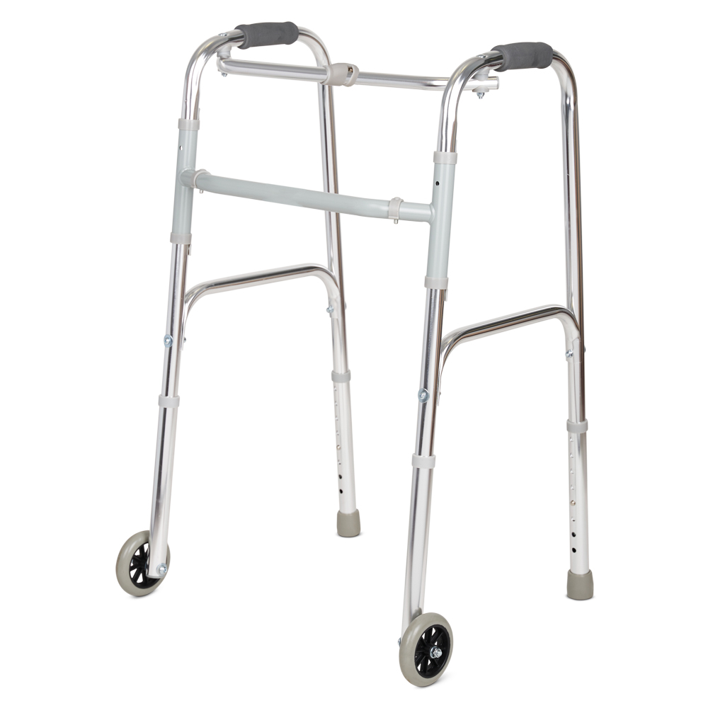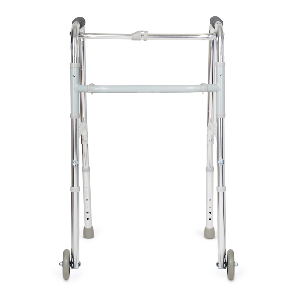 Прочные и удобные ходунки с возможностью регулировки по высоте, маневренными колесами на передних опорных ножках и шагающим режимом - отличный выбор для пользователей с ослабленными руками. Благодаря наличию колес можно передвигаться методом частичного перекатывания, не поднимая полностью ходунки при ходьбе.
