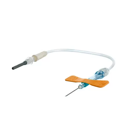 Цветовая кодировка "крылышек" соответствует диаметру иглы: оранжевый цвет - 0,5 мм.