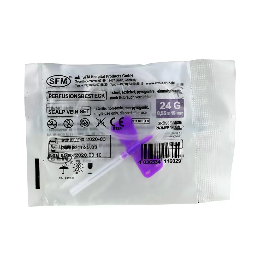 - Крылья окрашены в разные цвета, в соответствии с размером и диаметром иглы, согласно международной цветовой кодировке. Устройство снабжено иглой со специальной заточкой и силиконовой обработкой, что делает проникновение в ткани наименее болезненным.