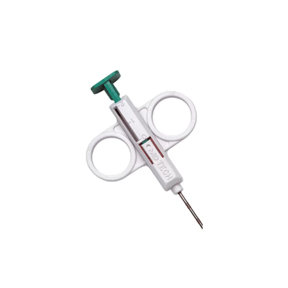 - Сантиметровая разметка, нанесенная на внешней канюле, облегчает контроль за глубиной введения иглы.