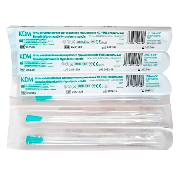 - Иглы для инъекций упакованы в индивидуальную блистерную упаковку.