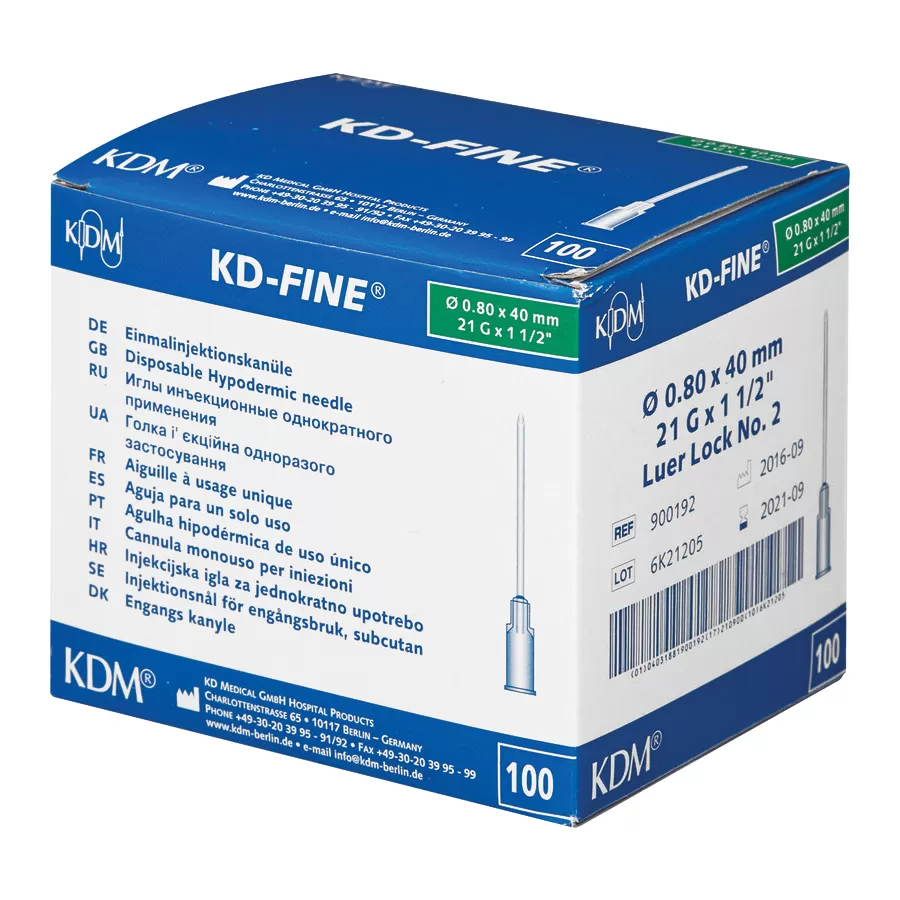 - Размер иглы - 0,80 х 40 мм 21 G.