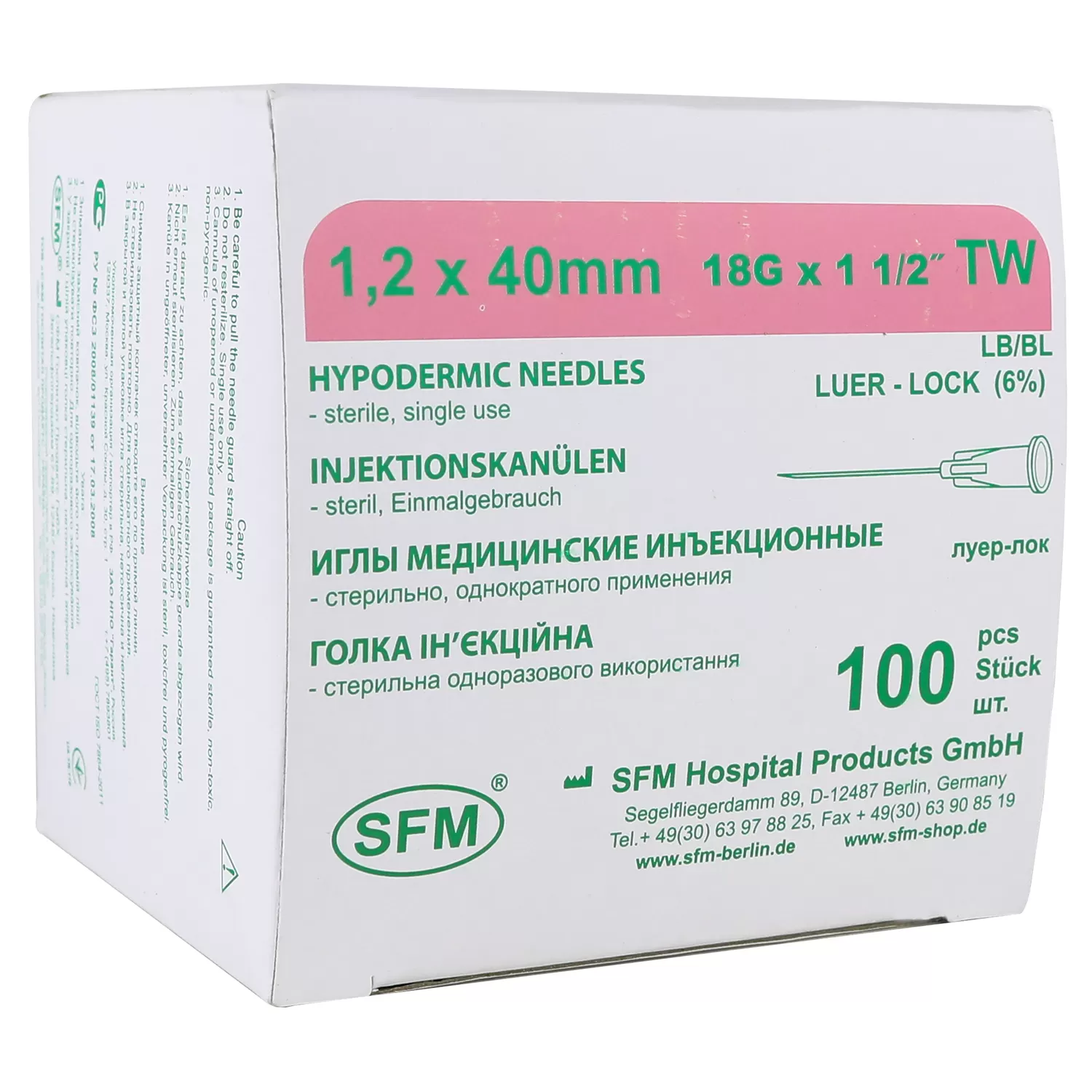 - Размер иглы - 1,2х40 мм 18G.