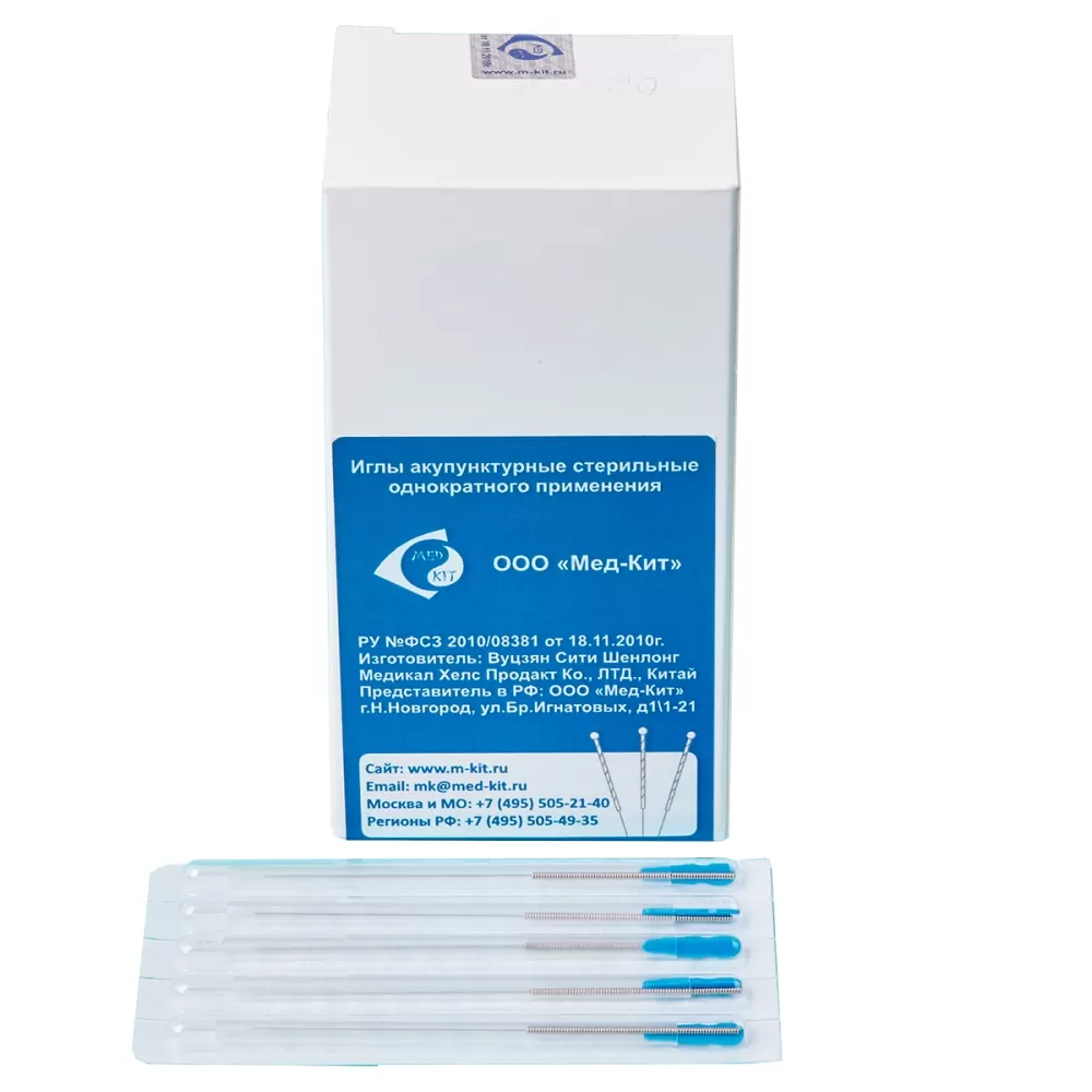 Иглы акупунктурные с направителем 0,25х30 мм Мед-Кит 100 шт