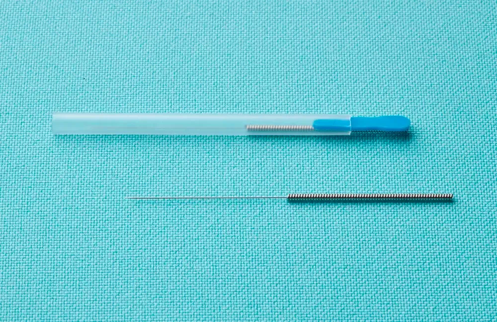 - Острие (рабочая часть) изготовлено из нержавеющей медицинской стали, витая ручка иглы из меди.