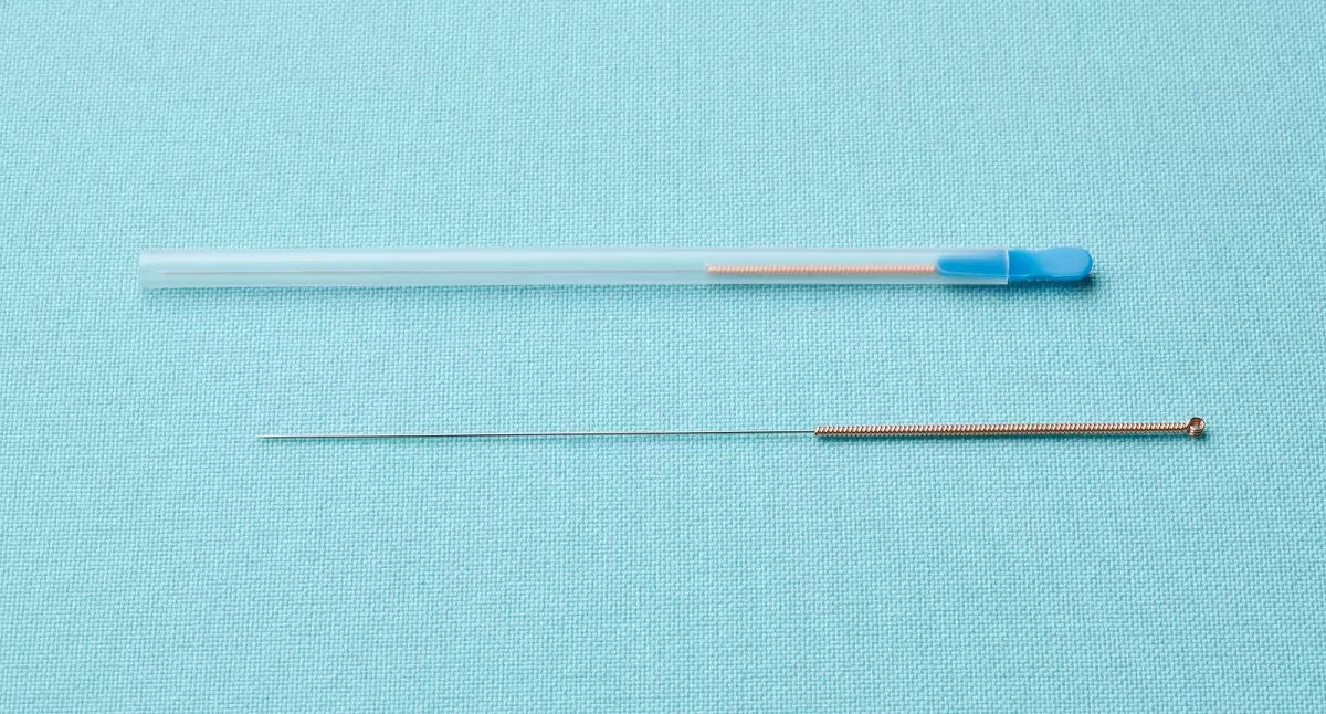 - Острие (рабочая часть) изготовлено из нержавеющей медицинской стали, витая ручка иглы с кольцом выполнена из меди.