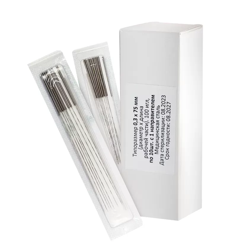 Иглы акупунктурные стальные стерильные с направителем 0,3х75 мм Мед-Кит 100 шт