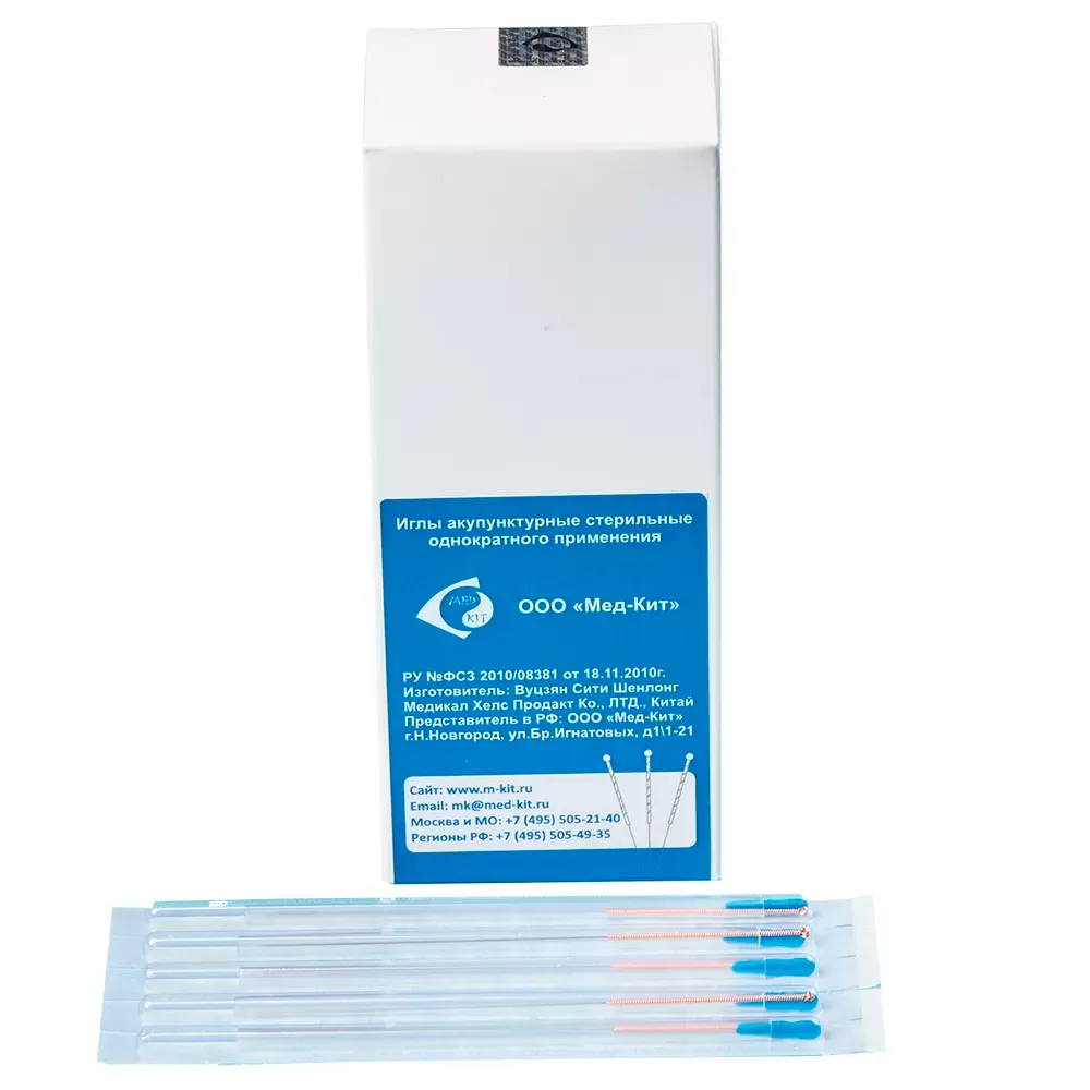 Иглы акупунктурные стальные стерильные с направителем 0,3х75 мм Мед-Кит 200 шт