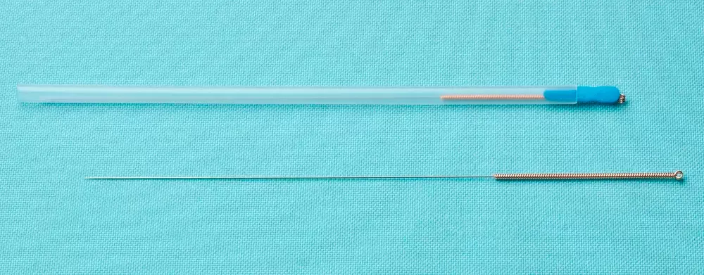 • Острие (рабочая часть) изготовлено из нержавеющей медицинской стали, витая ручка иглы из меди.