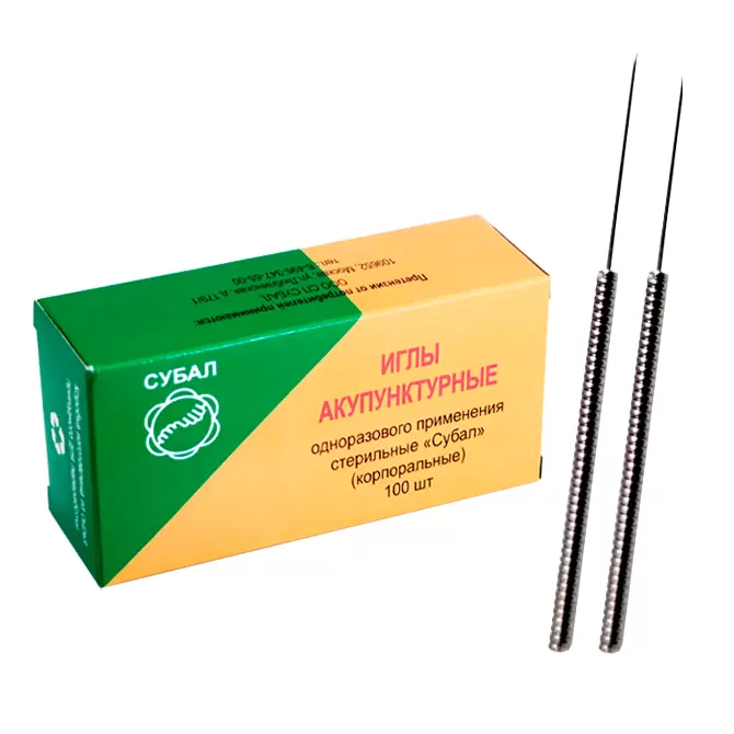 - Иглы корпоральные "Субал" 0,3x40 мм с направителем с ручкой из нержавеющей стали.