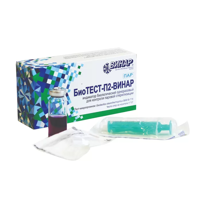 Индикатор биологический «БиоТЕСТ-П2-Винар» представляет собой носитель в виде пластиковой пробирки типа Эппендорф/стеклянного флакона с высушенными спорами бактерий, запакованный в бумажно-плёночную стерилизационную упаковку.