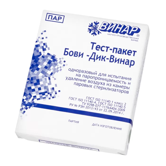 Тест-пакет представляет собой обёрнутый в упаковочную бумагу многослойный пакет из инертной бумажной загрузки с индикаторным листом в центре. Используется в тестовом Бови-Дик цикле - «134 °С, 3,5 минуты».