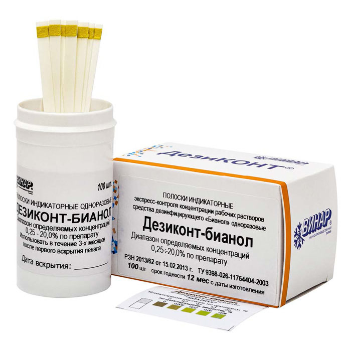 Индикатор Дезиконт-Бианол предназначен для экспресс-контроля концентраций рабочих растворов дезинфицирующего средства Бианол.