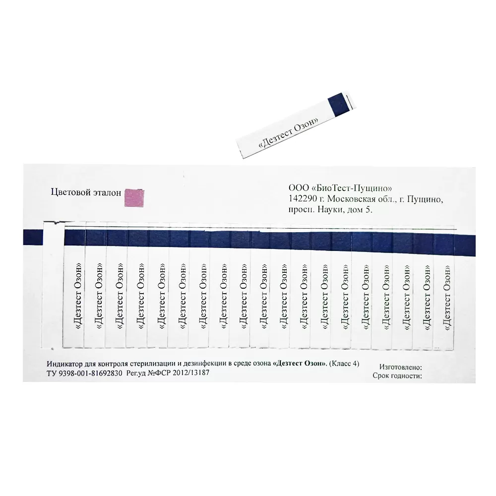 Индикатор для контроля стерилизации и дезинфекции в среде озона. Представляет собой бумажный носитель с индикаторным составом. Во время цикла работы стерилизатора индикаторный состав вступает в химическую реакцию с озоном, что вызывает изменение исходного цвета индикатора.