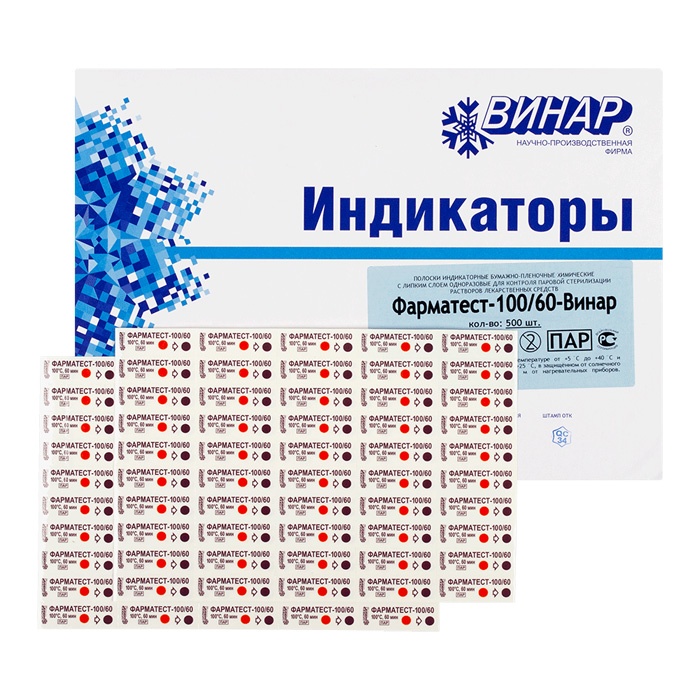 Индикаторы Фарматест предназначены для оперативного визуального контроля соблюдения критических переменных процесса паровой стерилизации водных растворов – температуры стерилизации, времени стерилизационной выдержки и наличия насыщенного водяного пара.