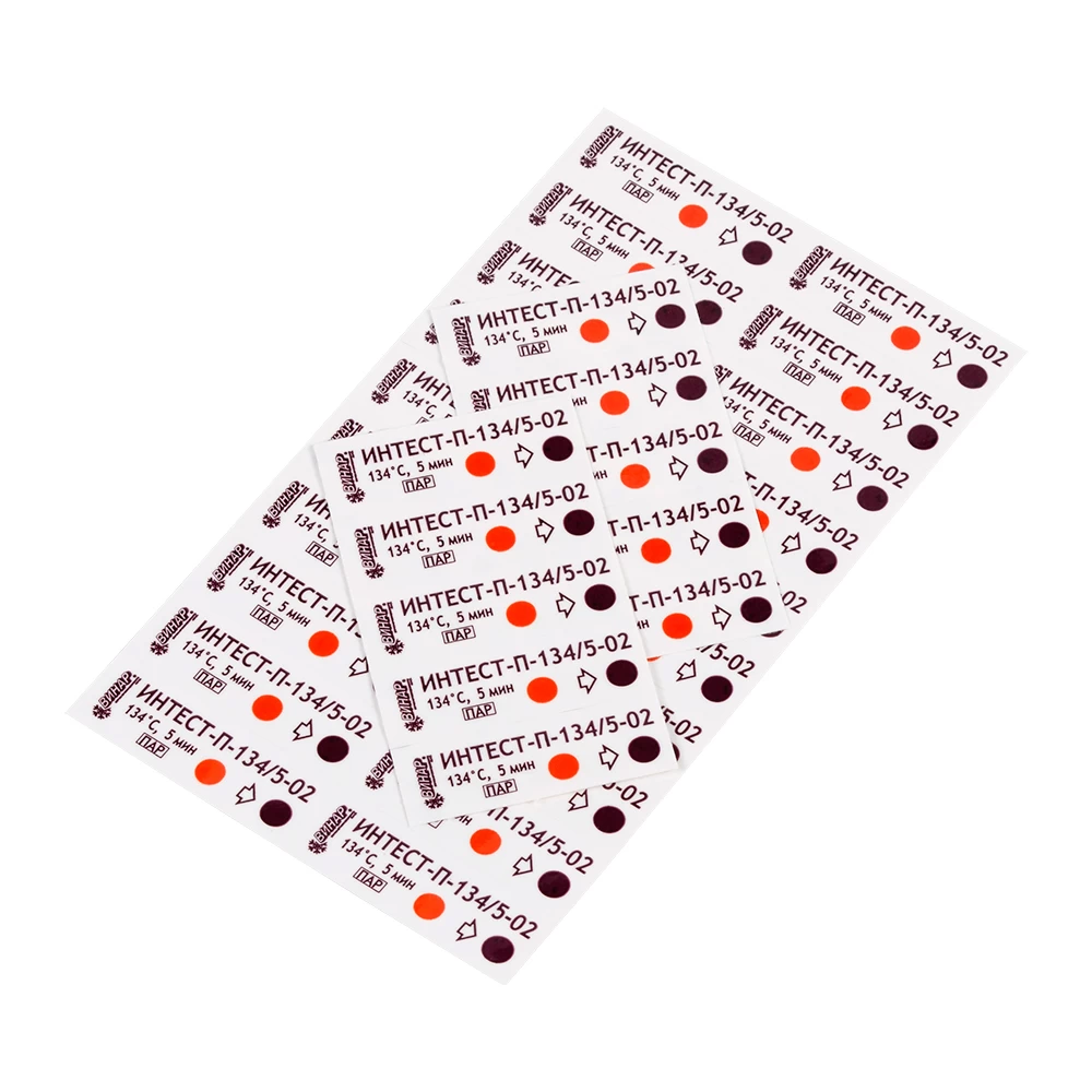 - Липкий слой на обратной стороне индикатора облегчает его закрепление на стерилизуемых упаковках и при документировании.