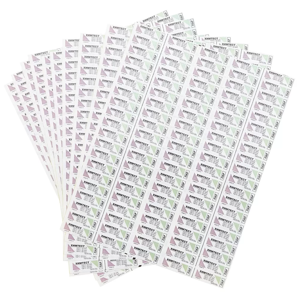 - Индикаторы представляют собой бумажный носитель на клеевом основании и бумажной подложке в листовом исполнении с нанесёнными цветными термоиндикаторными (в начальном состоянии) и цветовыми, определяющими конечное состояние, метками, маркировкой, соответствующей ГОСТ ISO 11140-1-2011. Наружная поверхность индикаторов защищена (метод разделительной мембраны) сополимером, пропускающим компоненты паро-газовых смесей и препятствующим прямому контакту термоиндикаторной метки с изделиями.