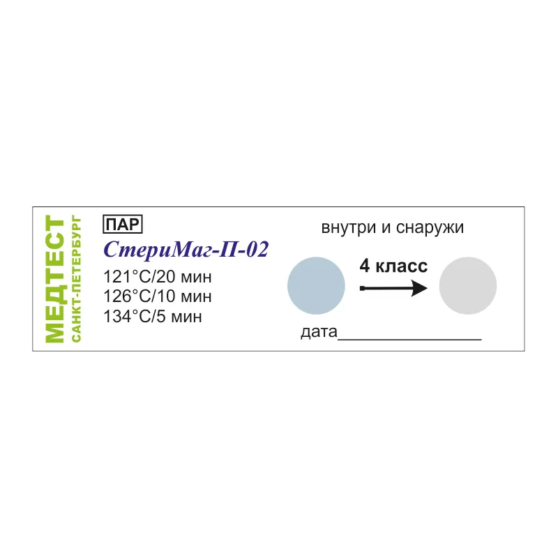 Медицинское изделие Индикатор химический многорежимный одноразового применения "Стеримаг-П-02" для контроля паровой стерилизации снаружи и внутри изделий и упаковок в режимах "121°С/20мин", "126°С/10мин", "134°С/5мин" РУ №РЗН 2018/7109 от 28.04.2018 г.