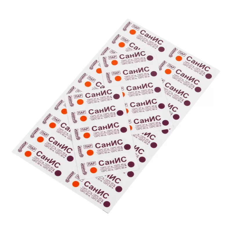 Индикаторы СанИС предназначены для оперативного визуального контроля соблюдения критических переменных процесса паровой обработки заражённых микроорганизмами объектов - температуры паровой обработки, времени обработки и наличия насыщенного водяного пара в камере парового стерилизатора.