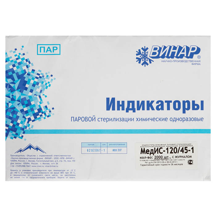 Индикаторы МедИС 120/45 предназначены для оперативного визуального контроля соблюдения критических переменных процесса паровой стерилизации – температуры стерилизации, времени стерилизационной выдержки и наличия насыщенного водяного пара, в камере паровых стерилизаторов с удалением воздуха из нее методом продувки паром (гравитационных).