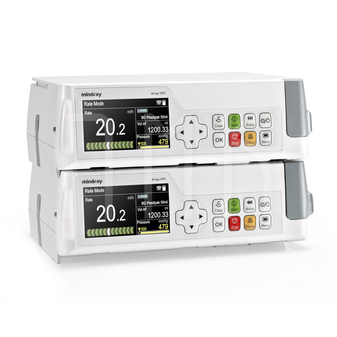 Благодаря горизонтальной конструкции инфузионных насосов BeneFusion VP5 можно размещать несколько аппаратов друг на друга. Время работы от аккумулятора составляет 9 часов, зарядка всего 6 часов. На большом (3,5 дюйма) цветном мониторе все параметры видны без захода в меню и с большого расстояния. Яркость экрана регулируется. Имеется три уровня сигнализации и 8 уровней громкости, яркая крупная лампа сигнализации заметна издалека.