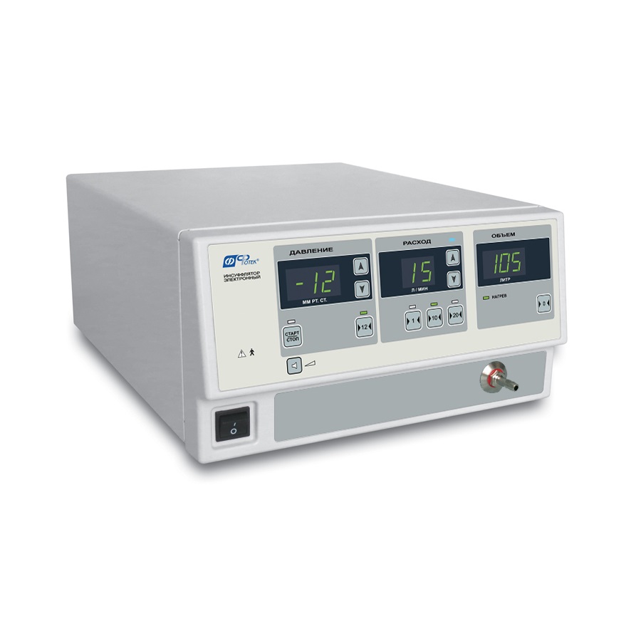 Инсуффлятор без нагревателя газа И001 ИНС-001-"ФОТЕК" предназначен для создания и автоматического поддержания заранее заданного давления углекислого газа во внутренних полостях пациента относительно давления окружающего воздуха (абдоминальное давление) при различных лапароскопических вмешательствах.