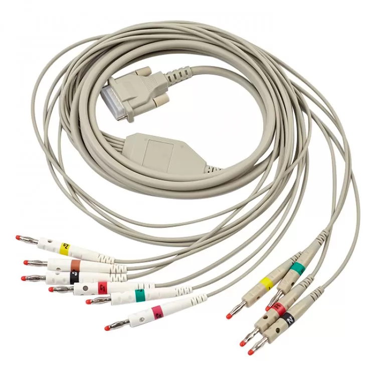 - ЭКГ-кабель с 10 проводами оборудован коннекторами для различных типов электрокардиографов.