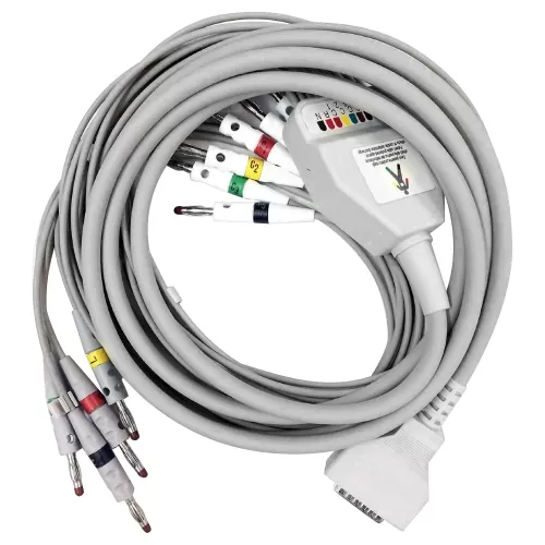 Кабель пациента Fiab представляет собой кабель серого цвета c центральной коробкой и 10 отведениями для подключения электродов, наложенных на тело пациента к кардиографу и считывания показаний с прибора.