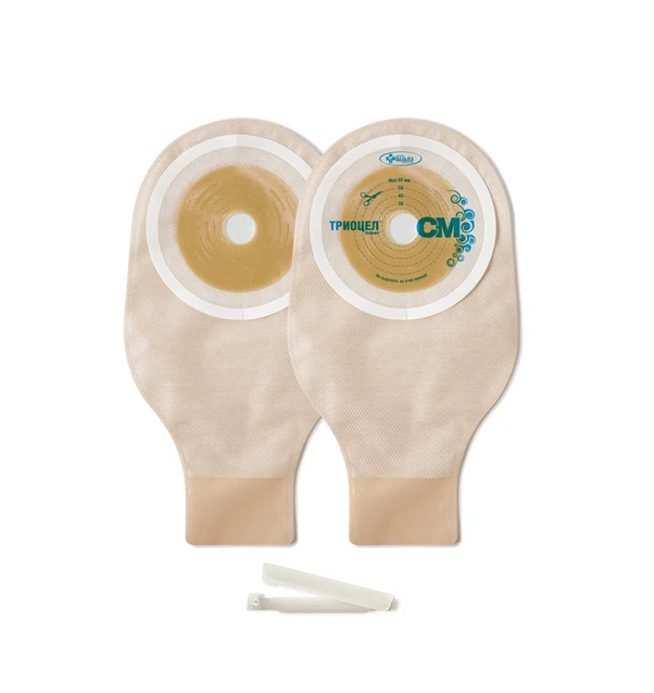 Калоприёмник ТРИОЦЕЛ®-СМ от компании «Пальма» предназначен для сбора выделений у пациентов с коло- и илеостомой, как в стационаре, так и в домашних условиях. Он представляет собой единую (однокомпонентную) систему: мешок и приклеивающуюся к коже адгезивную пластину объединены. Размер вырезаемого отверстия регулируется в диапазоне от 20 до 60 мм, что позволяет адаптировать его под индивидуальные анатомические особенности стомы.