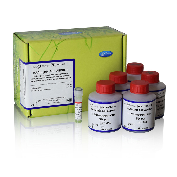 Набор реагентов для определения концентрации кальция в биологических жидкостях колориметрическим методом с Арсеназо III.