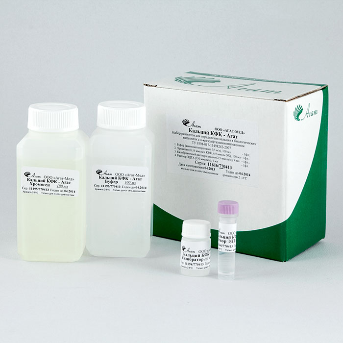 Диагностический набор КАЛЬЦИЙ КФК АГАТ предназначен для количественного колориметрического определения концентрации кальция в сыворотке, плазме крови и в моче человека в клинико-диагностических и биохимических лабораториях.