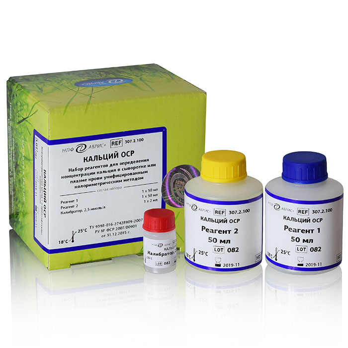Набор реагентов для определения концентрации кальция в сыворотке или плазме крови унифицированным колориметрическим методом с о-крезолфталеин-комплексоном.