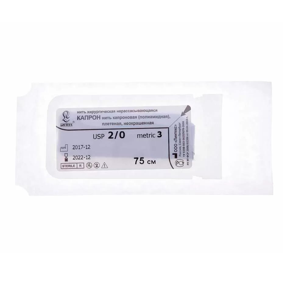 Капрон – это синтетический условно нерассасывающийся (биодерградация происходит в течение 1-2 лет) шовный материал.