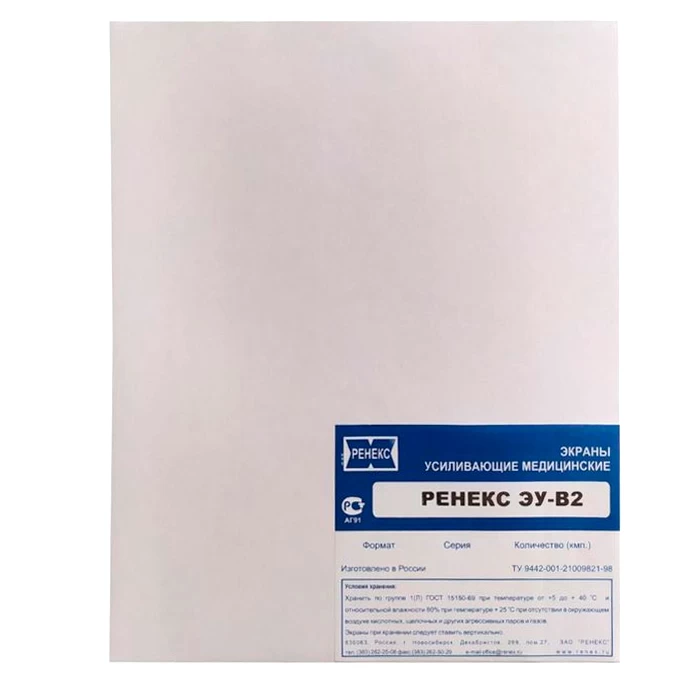 - В комплект входят усиливающие экраны с эмиссией в синей области спектра Ренекс ЭУ-В2 (класс 200).