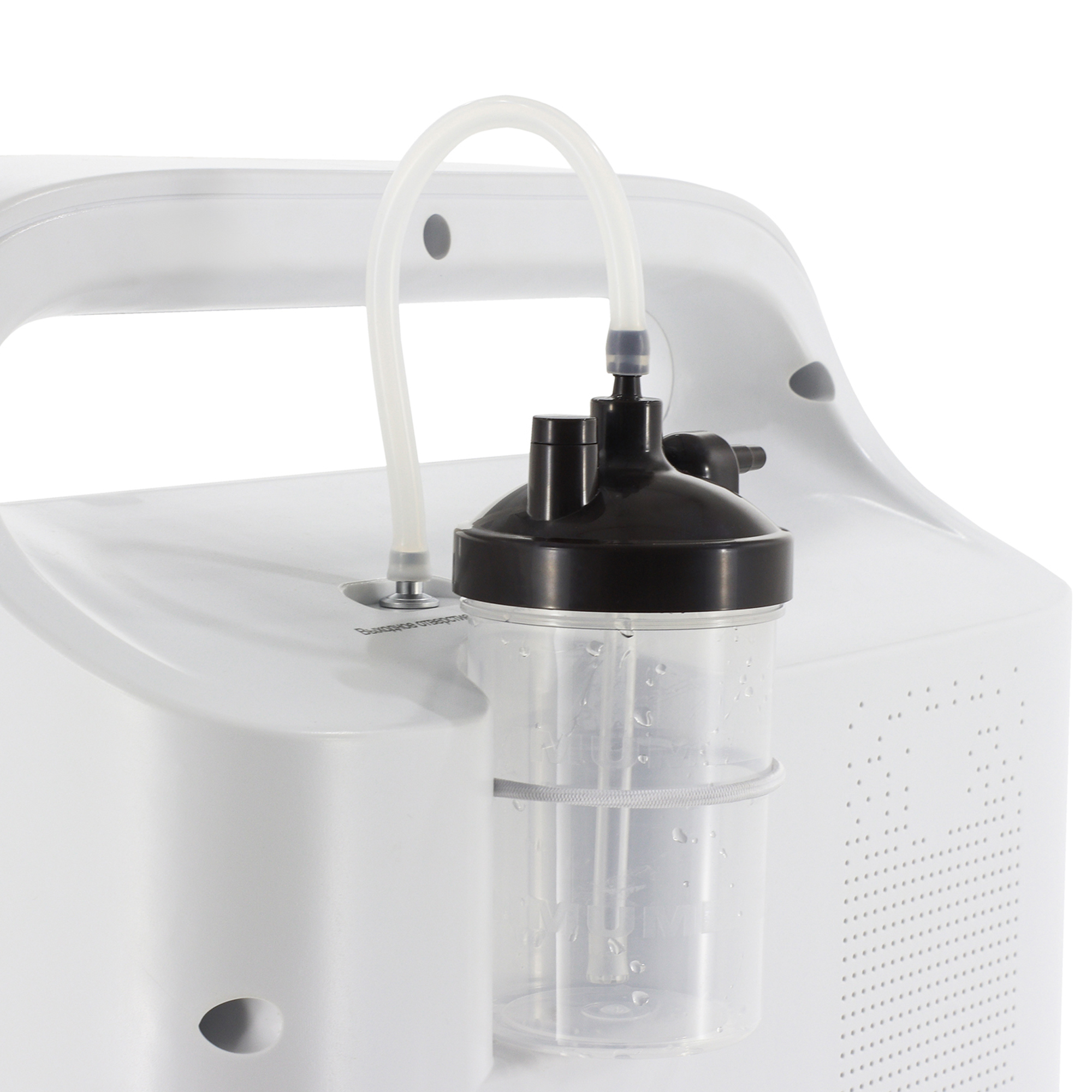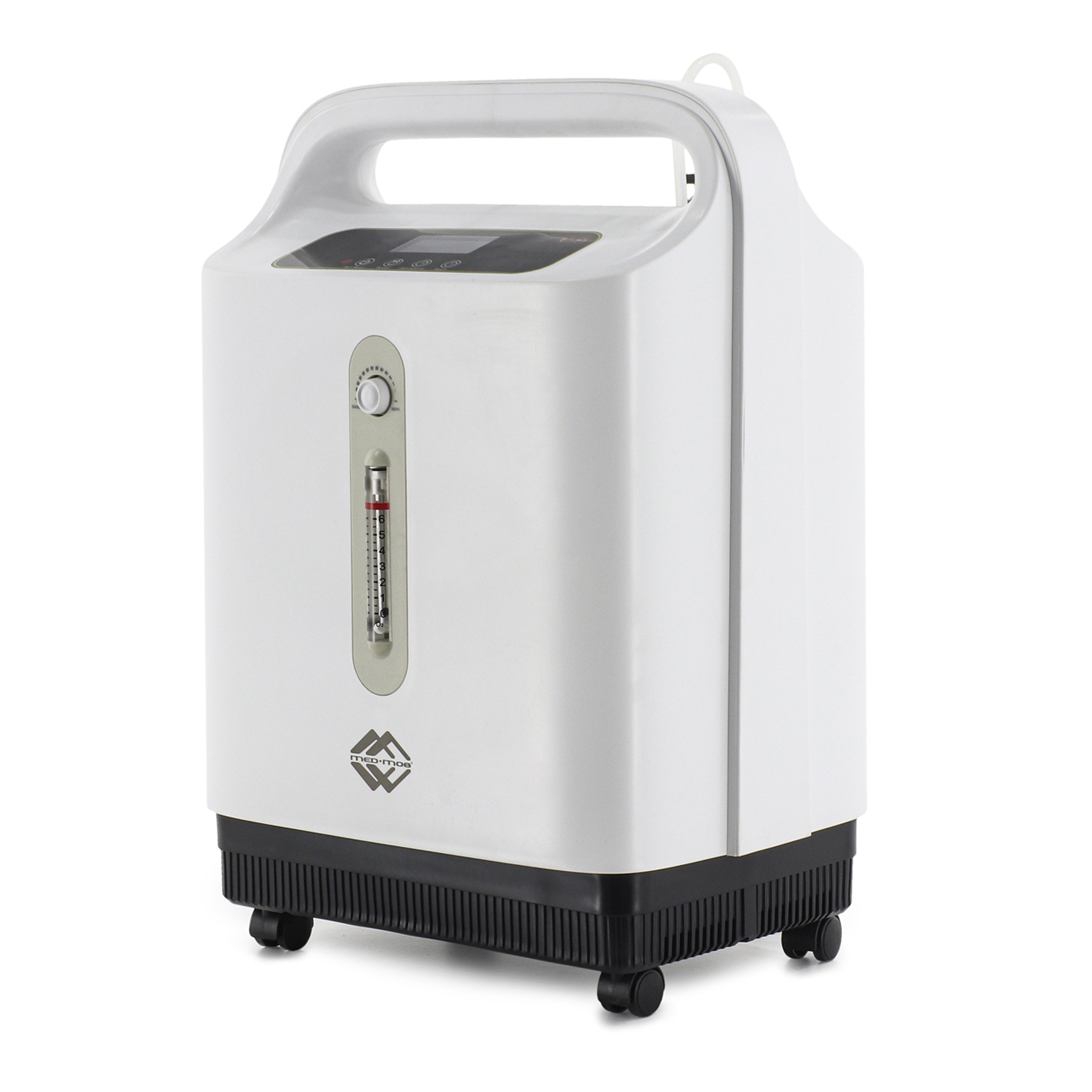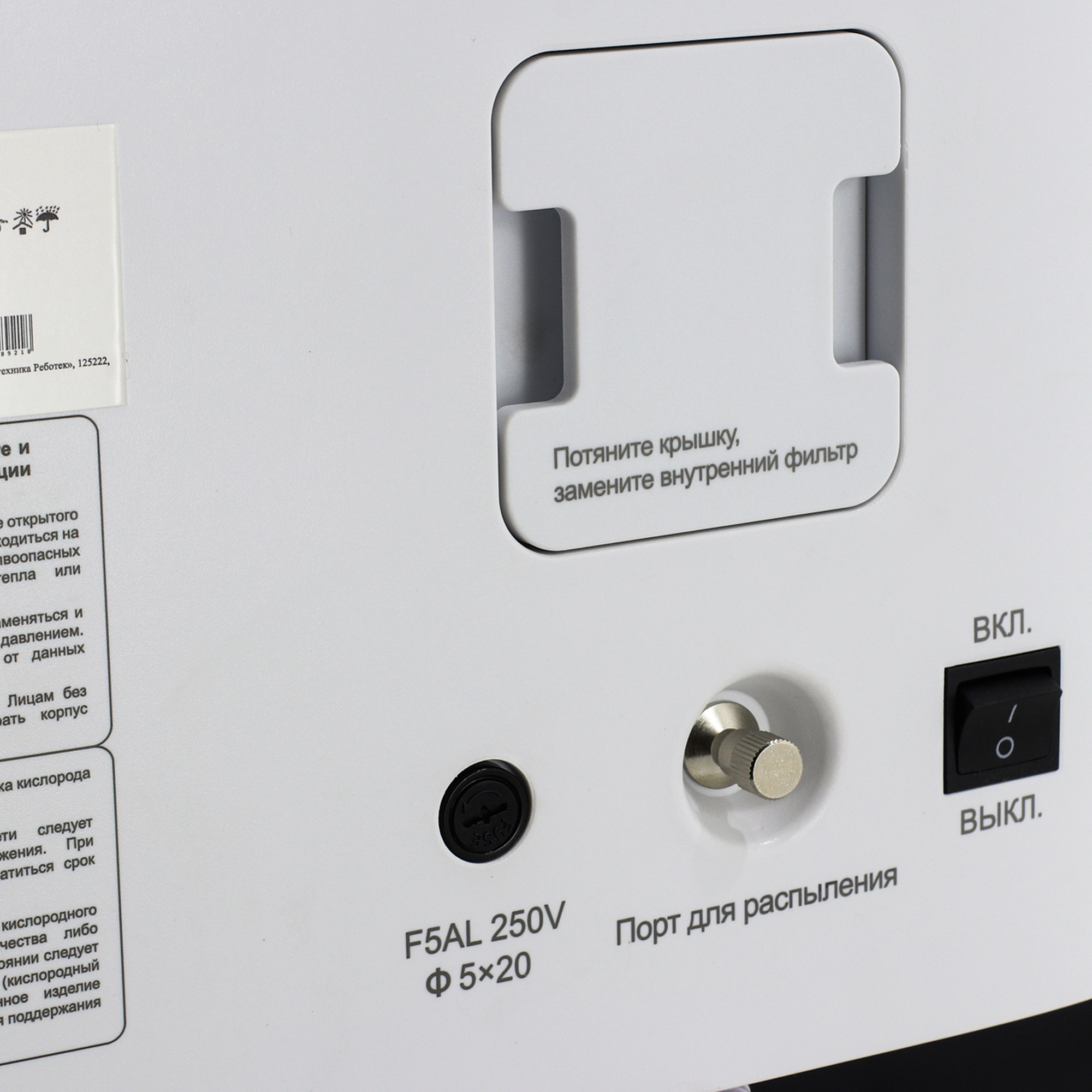 Корпус концентратора изготовлен из высокопрочного ABS-пластика, обеспечивающего долговечность и устойчивость к механическим воздействиям. Для удобства перемещения устройство установлено на четырех опорных колесах диаметром 3 см. Управление аппаратом осуществляется через интуитивно понятную панель с большим ЖК-дисплеем размером 12,5 x 7,7 см, который отображает все ключевые параметры работы. Концентратор обладает расширенным набором функций, включая встроенный съемный увлажнитель кислородно-воздушной смеси, систему голосового и светового оповещения, таймер работы, дистанционное управление и фоновую подсветку. Особого внимания заслуживает система безопасности: аппарат оснащен звуковой индикацией, аварийным оповещением при отключении питания и сменным воздушным фильтром для очистки поступающего воздуха от микрочастиц пыли.