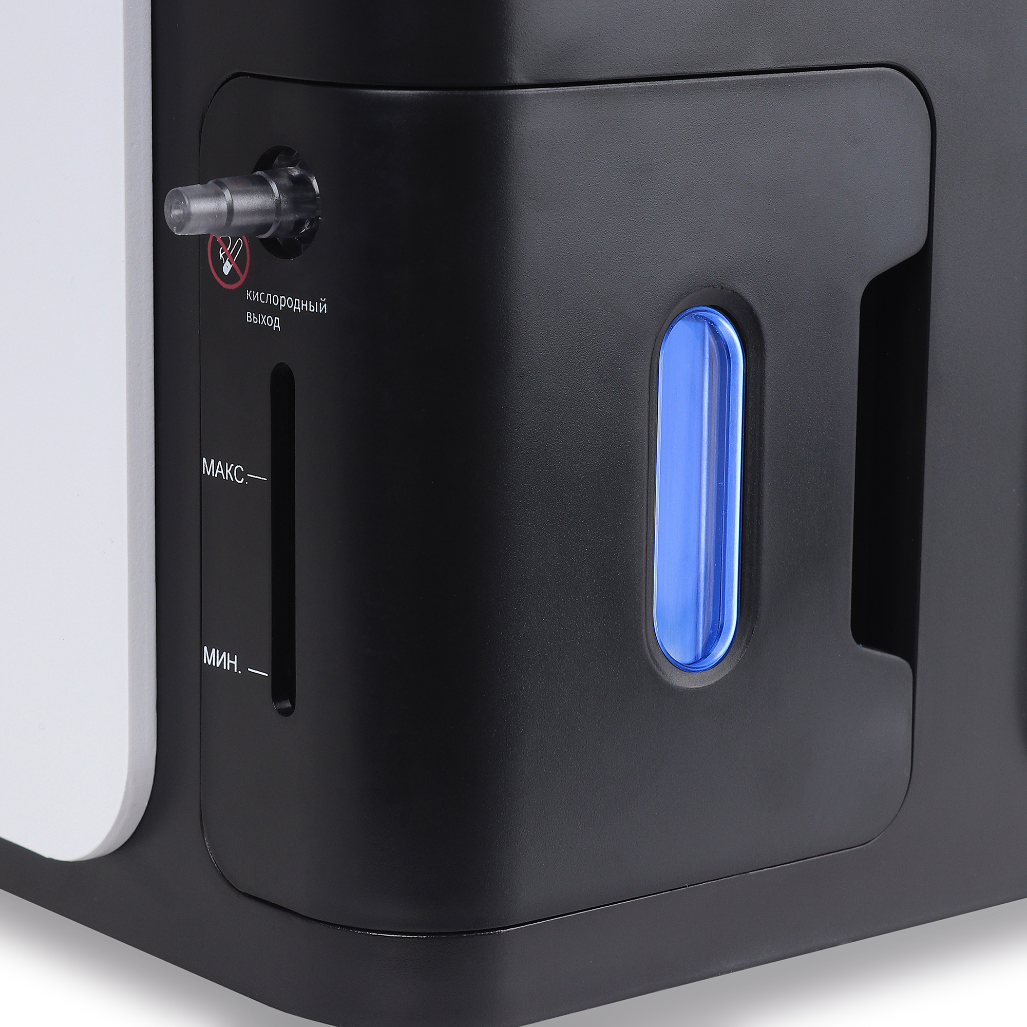 Компактное стационарное устройство с корпусом из ударопрочного ABS-пластика, выполненное в травмобезопасном дизайне без острых углов. Концентратор оснащен двумя удобными углублениями-ручками для перемещения. Устройство устойчиво благодаря четырем мягким опорным ножкам из немаркой резины. Габариты составляют 320x210x320 мм, а масса – 8 кг (нетто).