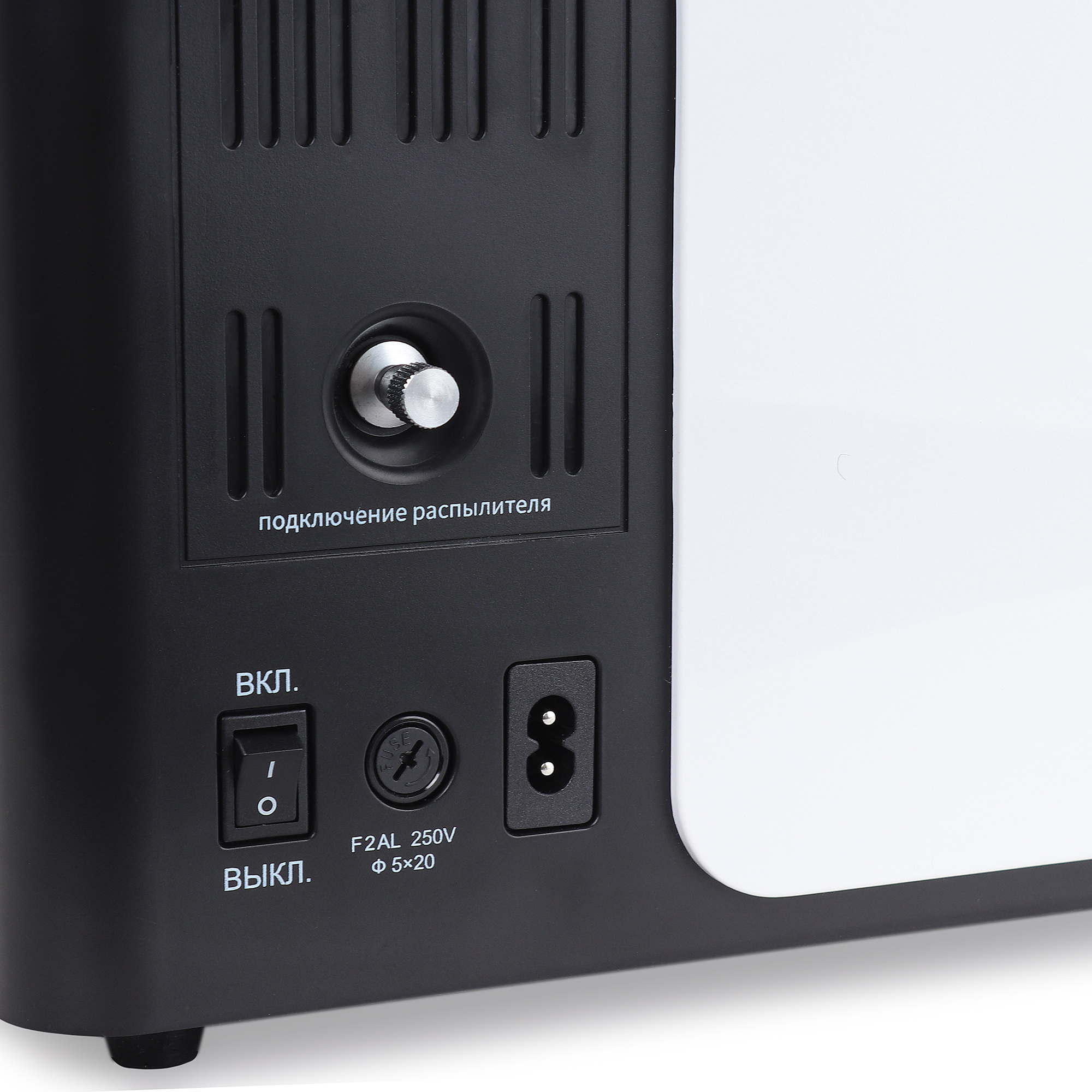 - Съемный увлажнитель из прозрачного пластика с предохранительным клапаном, минимальными и максимальными отметками уровня воды.