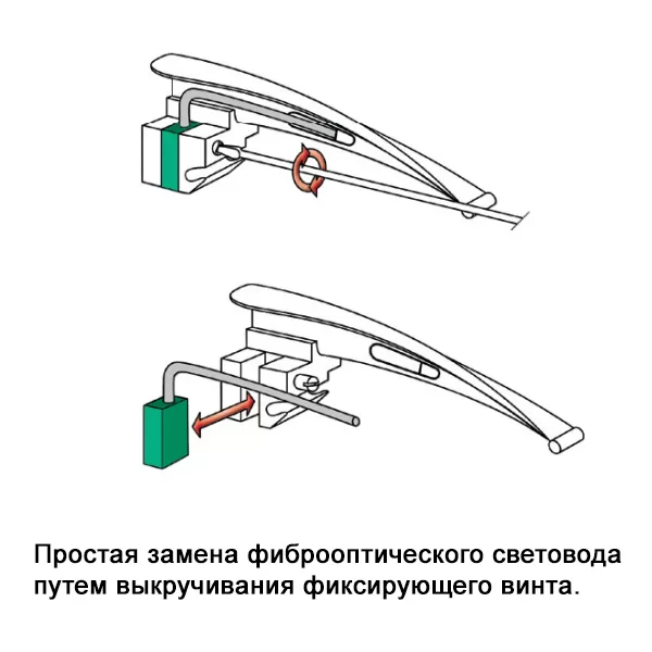 Клинок со сменным фиброоптическим световодом.