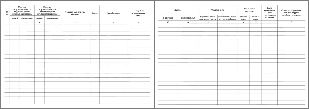 Графы для заполнения Книги регистрации листков нетрудоспособности (форма № 036/у):