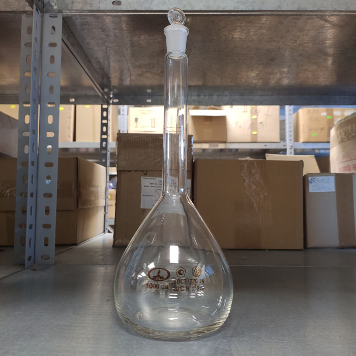 Колба мерная 2-1000мл с шлифом, со стеклянной пробкой, 19/26, (10001132), Минимед, 1шт.