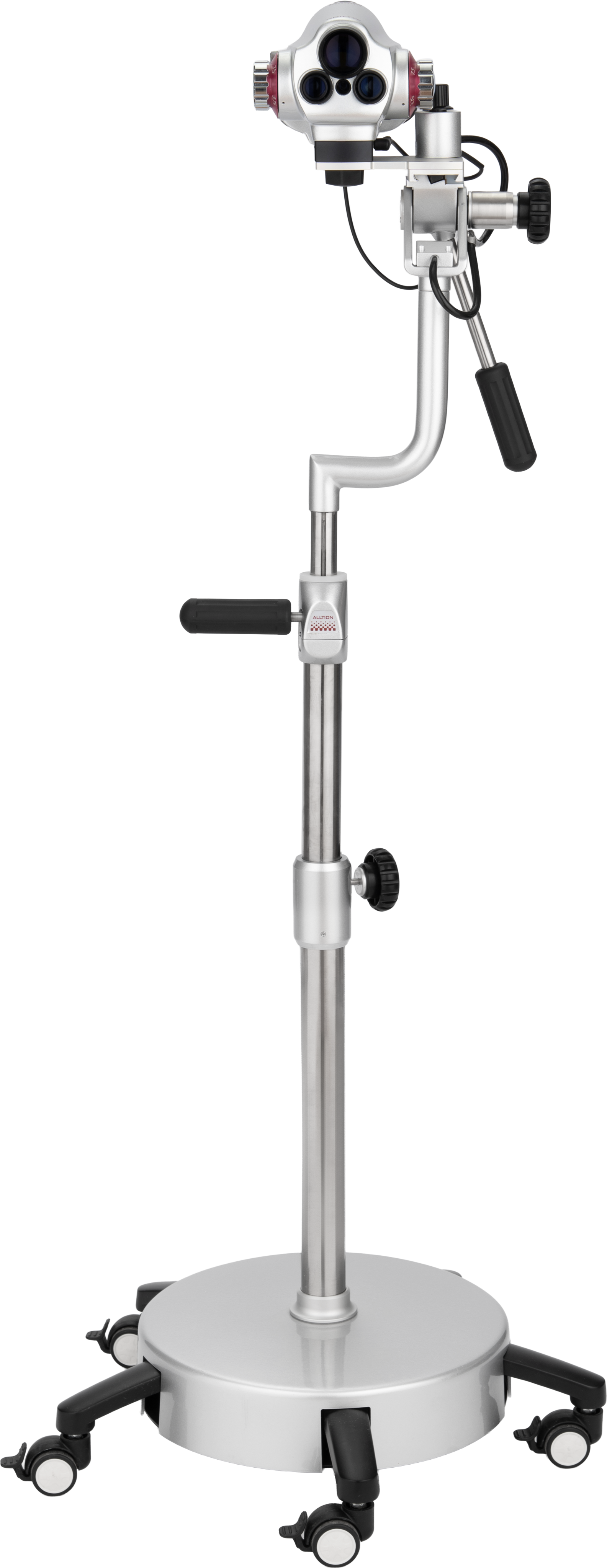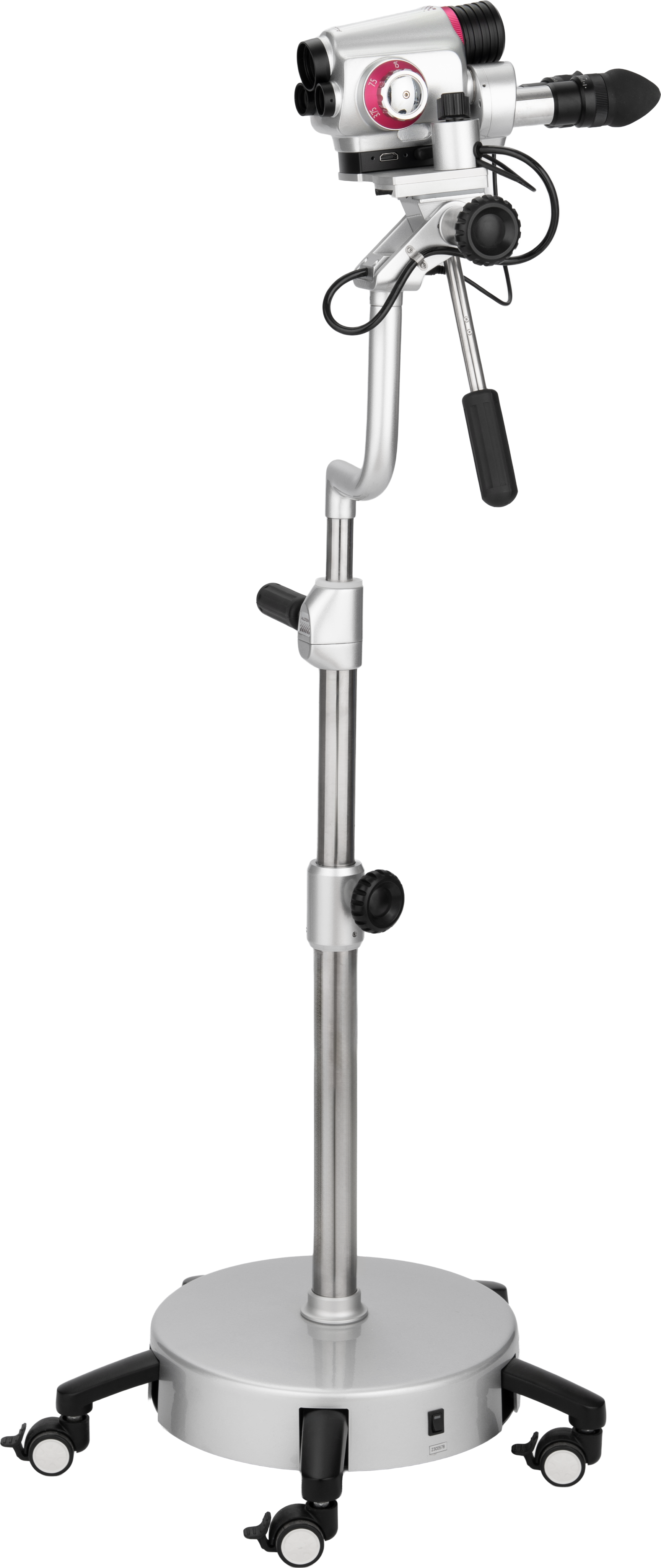 Штатив на перекатном основании с 5-ю колесами позволяет легко и быстро перемещать кольпоскоп.