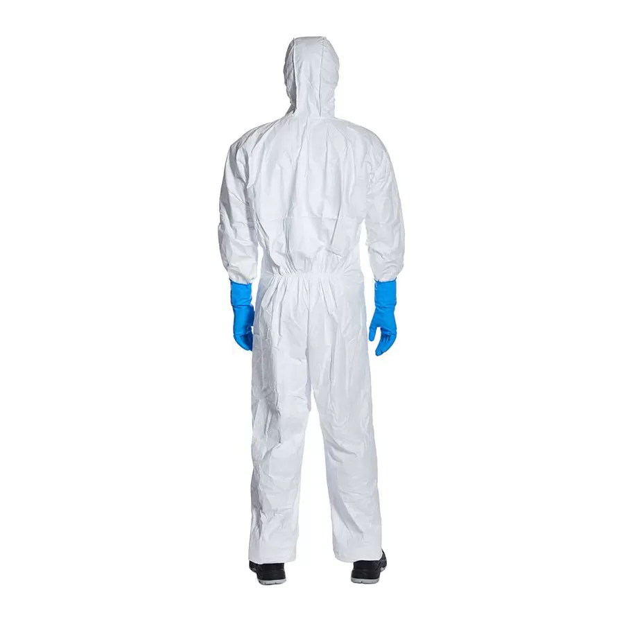 Комбинезон с капюшоном. Дизайн обеспечивает защиту и учитывает требования эргономики. Внешние швы прострочены. Эластичные манжеты, низ брюк и вырез капюшона. Эластичная талия (вклеенный эластичный элемент). Застежка-молния и клапан из Тайвек®.