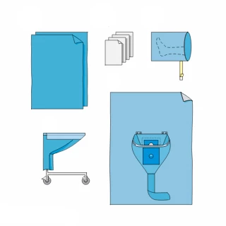 - Простыня для артроскопических операций (две эластичные манжеты D — 8 и 6 см; карман для сбора и отвода жидкости) 320х230 см из Tutami adsorb плотность 90 г/м2 - 1 шт.