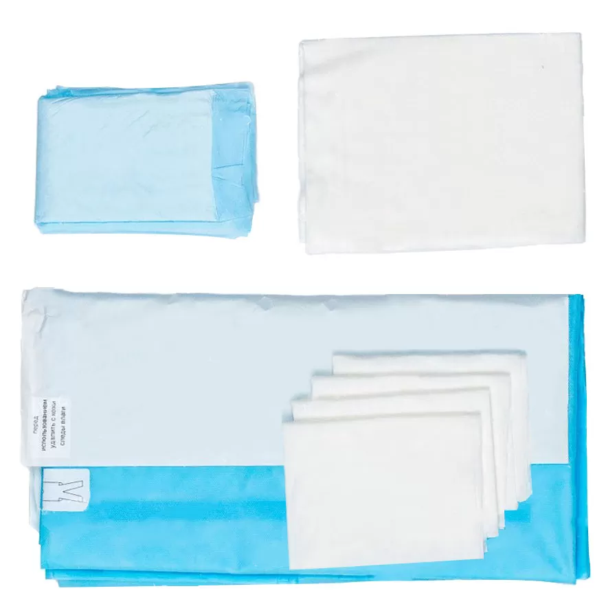 Комплект белья хирургического для кесарева сечения, включающий простыню для кесарева сечения из материала SMS пл.60г/м2.