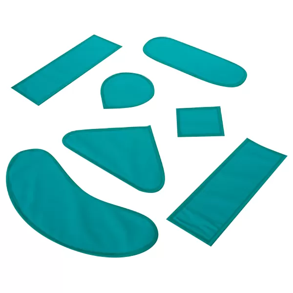 Комплект защитных пластин из 7 элементов различного размера и формы для защиты отдельных органов пациента при рентгенологических исследованиях.