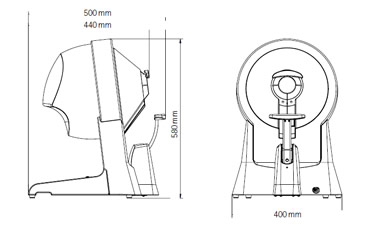 Прибор исключительно практичен в использовании. Его закрытая конструкция со светозащитным козырьком позволяет проводить обследования в обычном освещённом кабинете, без необходимости создавать условия полной темноты. Периметр подключается через порт USB к ноутбуку или компьютеру, а его настройка и управление осуществляются с помощью интуитивно понятного программного обеспечения. Благодаря относительно небольшому весу (около 13 кг) прибор отличается мобильностью и может использоваться в разных помещениях, что особенно ценно для врачей профпатологов и в условиях выездных осмотров.