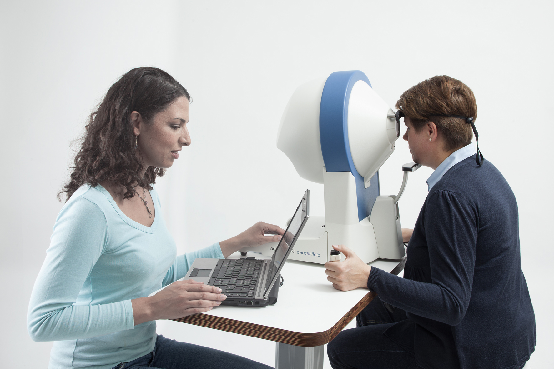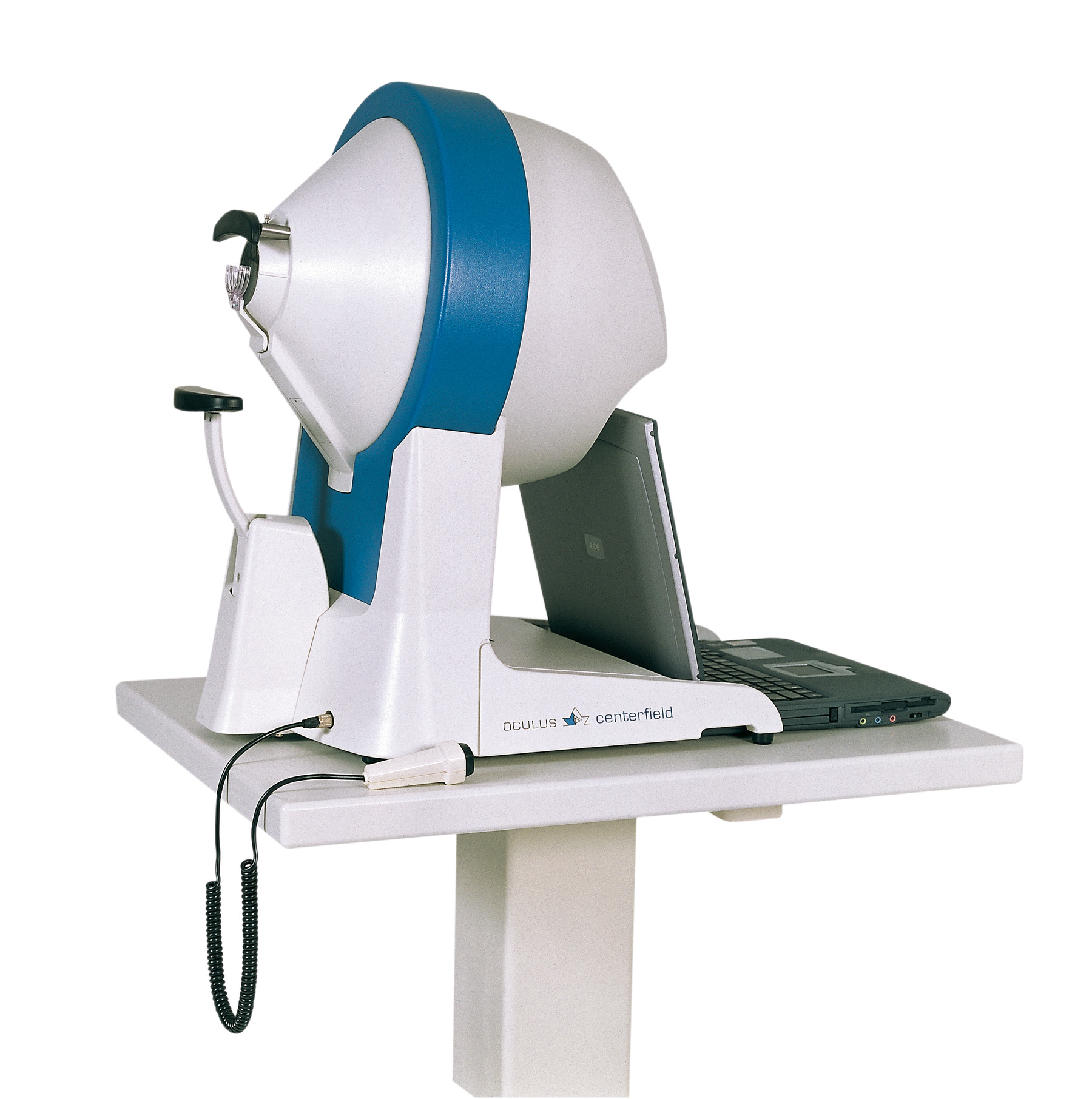 OCULUS Centerfield® 2 представляет собой универсальный диагностический прибор, который проводит статическую, кинетическую и цветовую периметрию, а также измеряет пороговую чувствительность сетчатки. Его ключевое отличие от аналогов — способность исследовать поле зрения до 70° во всех направлениях, что сопоставимо с возможностями более крупных стационарных периметров. Это достигается благодаря уникальной инженерной разработке — системе сдвига точки фиксации взгляда пациента внутри купола, что позволяет тестировать периферические области с использованием расширенных паттернов, например, теста Эстермана.