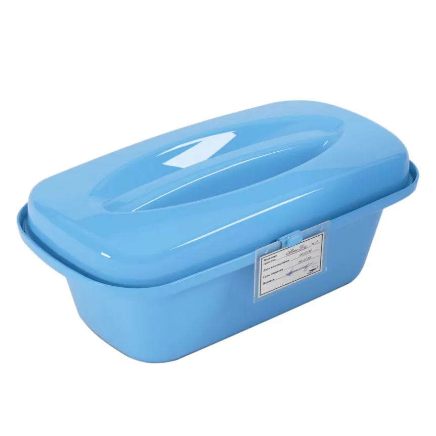Контейнер для предстерилизационной очистки, химической дезинфекции и стерилизации шприцев, термометров, шпателей, катетеров, одноразовых медицинских изделий, малого хирургического инструмента, гинекологического инструмента. Контейнер представляет собой ванну с крышкой, внутри которой расположен перфорированный поддон. Для полного погружения легковсплываемых изделий контейнер комплектуется утопителем.