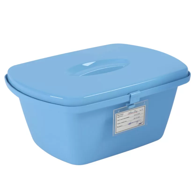 Контейнер для предстерилизационной очистки, химической дезинфекции и стерилизации шприцев, термометров, шпателей, катетеров, одноразовых медицинских изделий, малого хирургического инструмента, гинекологического инструмента. Контейнер представляет собой ванну с крышкой, внутри которой расположен перфорированный поддон. Для полного погружения легковсплываемых изделий контейнер комплектуется утопителем.
